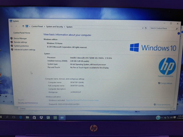 Processor model Intel Celeron N2840